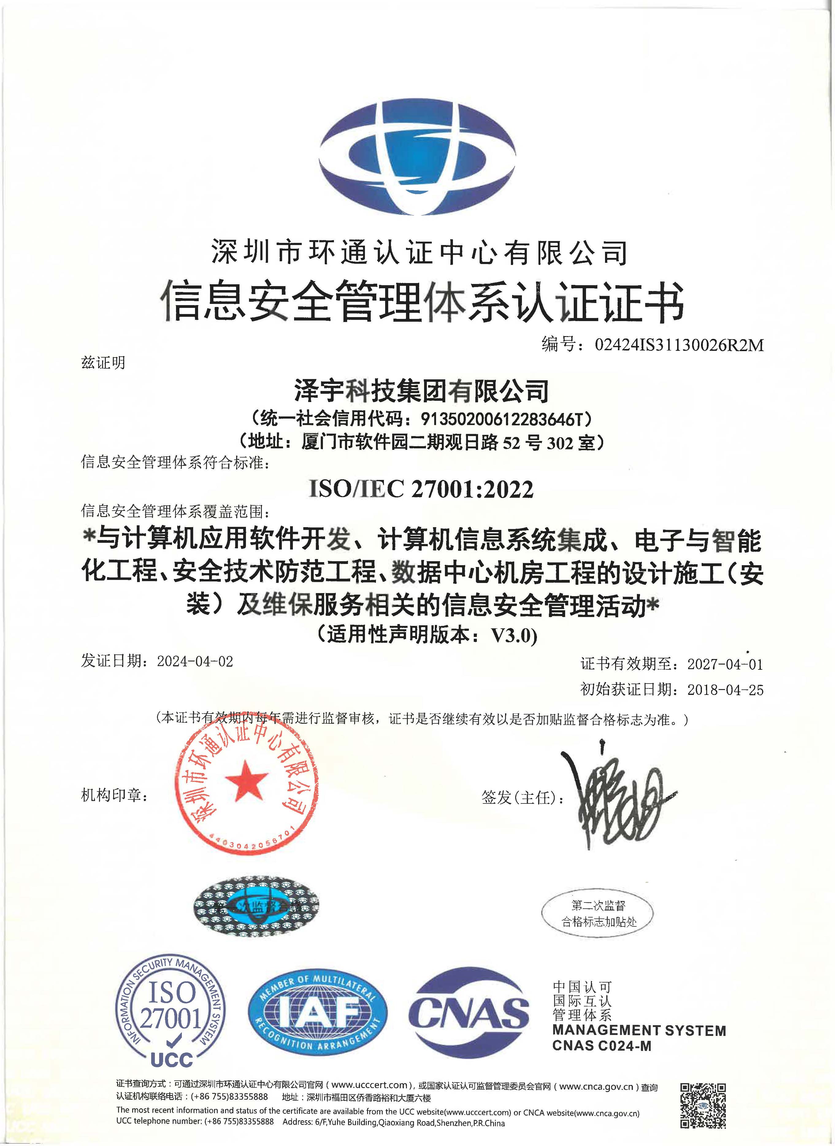 澤宇科技集團是一家集物聯網應用、系統集成、軟件開發及運維服務于一體的綜合性、科技型、專業技術服務型企業,同時也是廈門市首家專業從事數據中心建設的企業。